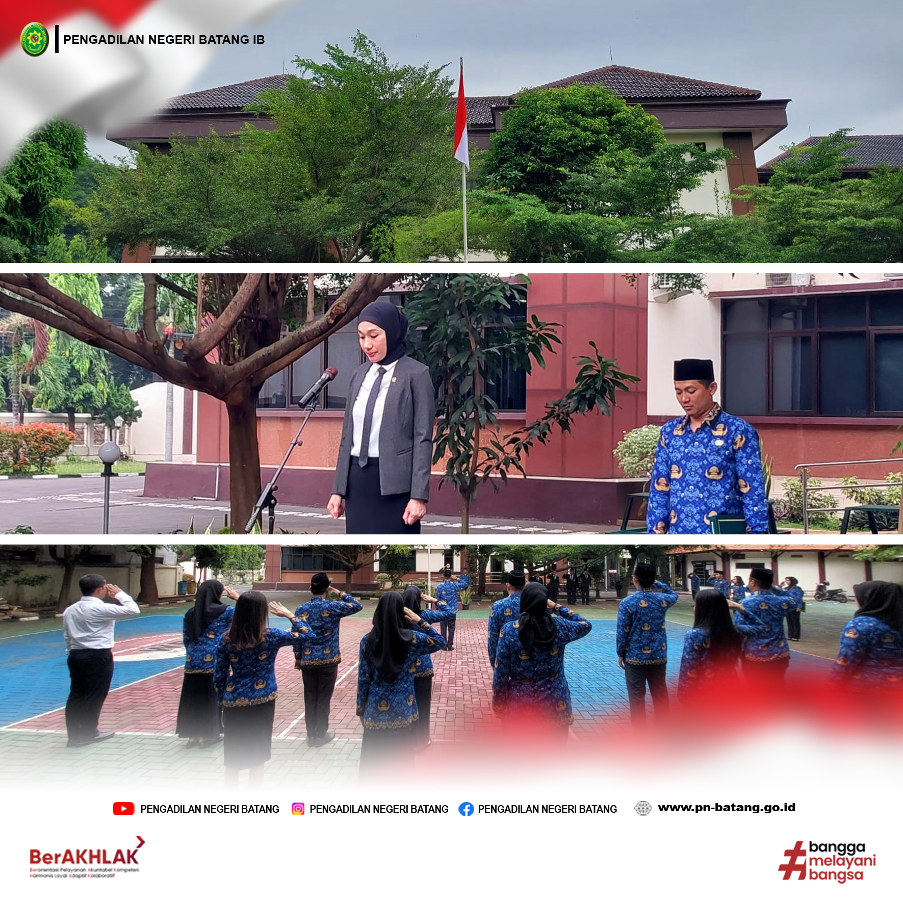 Upacara yang dilaksanakan di Halaman Kantor PN Batang di Pimpin oleh Wakil Ketua PN Batang Ibu Hj. Nur Amalia Abbas, SH.,MH diikuti oleh Seluruh Aparatur Pengadilan Negeri Batang.